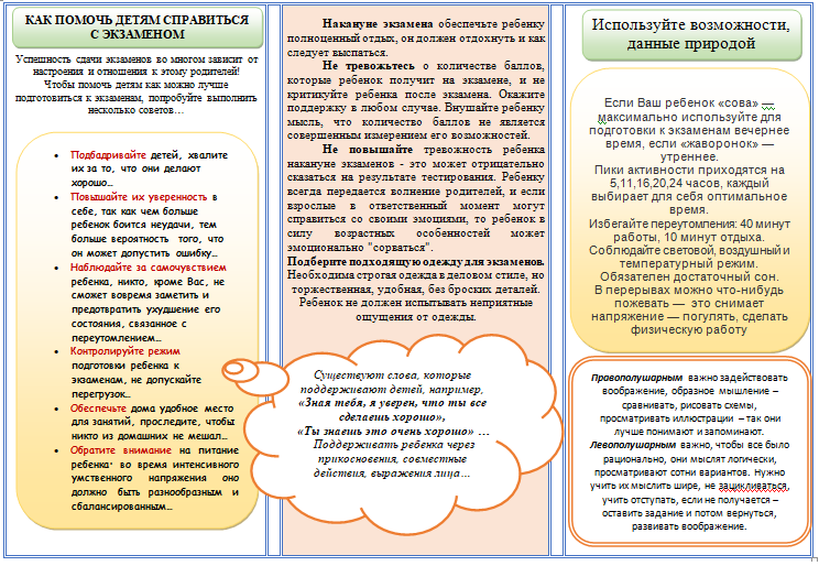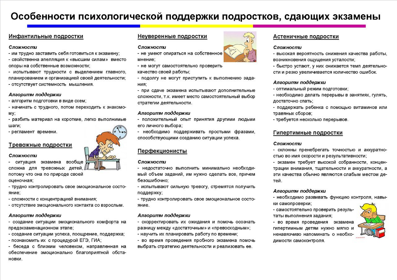 Период подготовки и сдачи экзаменов — это время повышенного эмоционального напряжения. Наша задача — помочь вам справиться с волнением, настроиться на успех и использовать внутренние ресурсы. Школьные психологи подготовили для вас полезные материалы и всегда готов оказать поддержку.